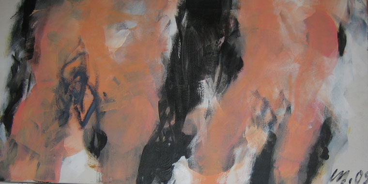 Von Adam und Eva bis zu Zeus und den Zentauren Jürgen Meyers Arbeiten auf Leinwand bilden nicht selten biblische oder mythologische Bilder und Geschichten ab. Dabei versucht der Maler aber nicht, den Vorgängen klassisch zu begegnen, sondern die Handlungen in das Hier und Jetzt aufzulösen. Körperlichkeiten, Natur- und Schicksalsgewalten und nicht zuletzt gesellschaftsgöttliche Verstrickungen werden mit der Wahrnehmung der Gegenwart gepaart. Der Kampf um Anerkennung in einer Gesellschaft von Egoisten hat die Menschen längst auf Augehöhe griechischer Götter erhoben - oder den Olymp auf den Boden der Tatsachen stürzen lassen. > mythologische Skizzen | |||||||